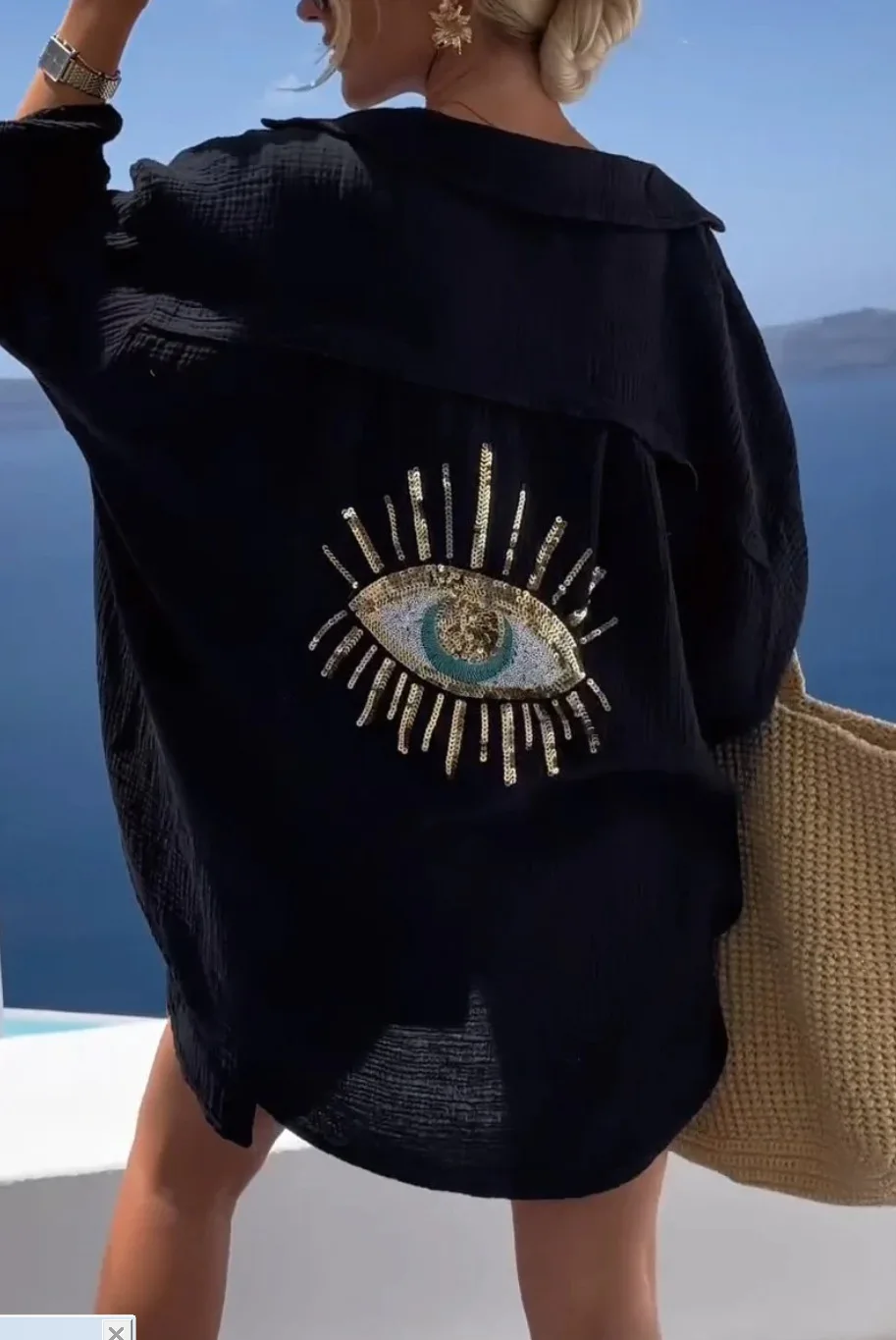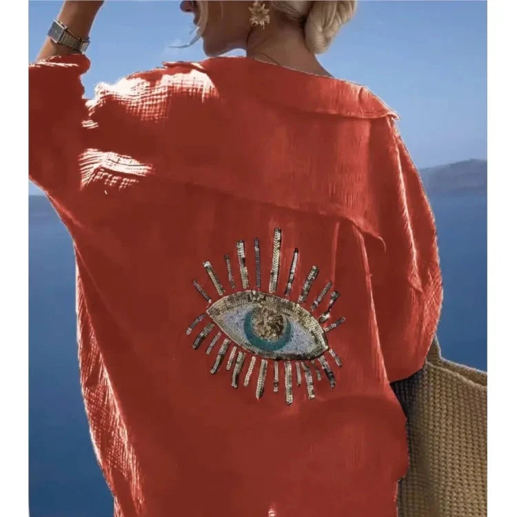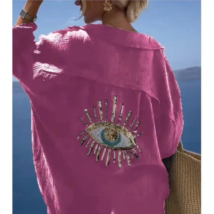 Casual Sequin Eye Shirt Dresses - Beach Style Loose Button Sun Protection - Cotton Linen Shirt Dress