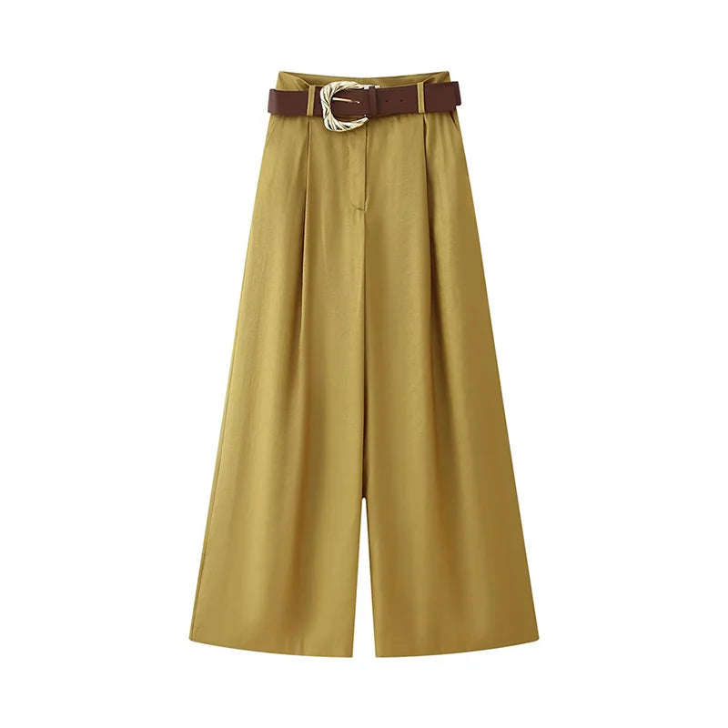 Elegant Women Vest Pants Set Solid Sling V-neck Backless Tops Belt Zipper Wide Leg Long Trouser Lady Suit